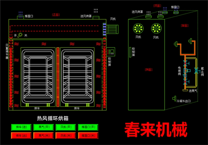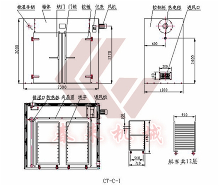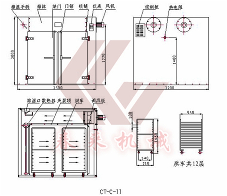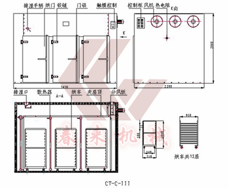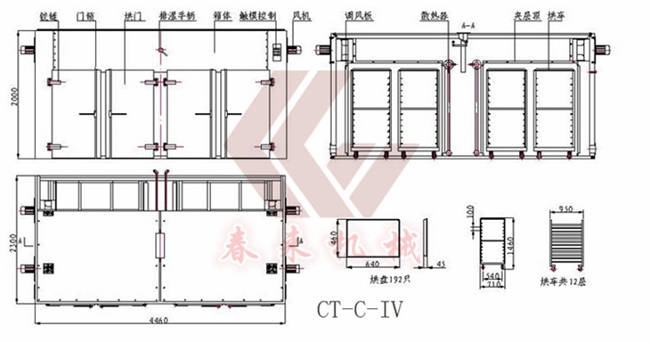 9.廠的烘車,烘盤尺寸統(tǒng)一,可以互換使用。