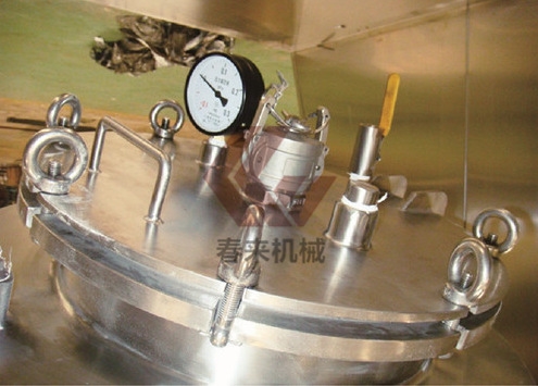 4、設備可選用變頻調速的方式,使設備啟動平穩,電機電流不過大,延長設備壽命。人孔蓋與桶體密封為耐溫耐壓的氟橡膠材料,出料口為真空蝶閥,不僅可以確保罐內真空度,而且可以調節出料時的流量。