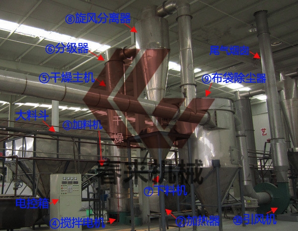 4、物料停留時間短,成品質(zhì)量好,可用于熱敏性物料干燥。